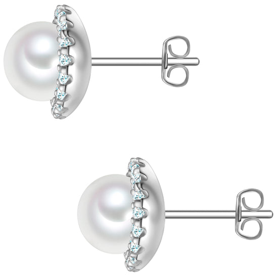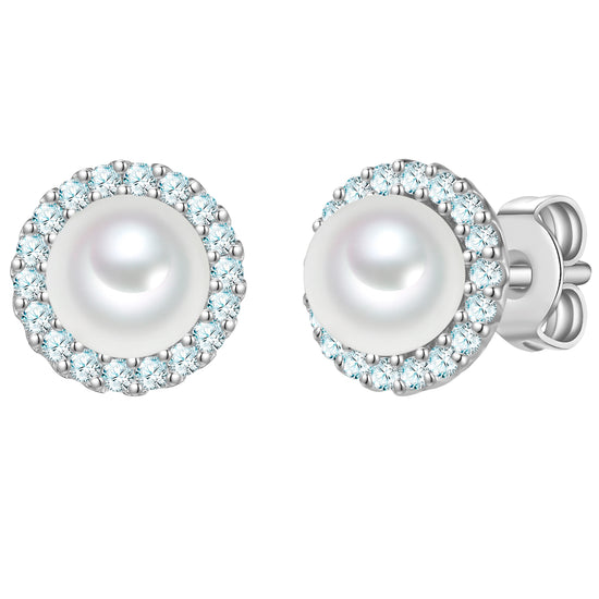 Ohrstecker Sterling Silber Muschelkernperle weiß Zirkonia weiß