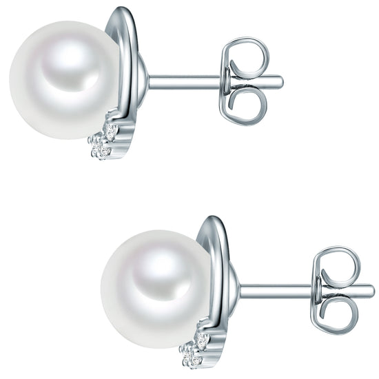 Ohrstecker Sterling Silber Perlmutt weiß Zirkonia weiß