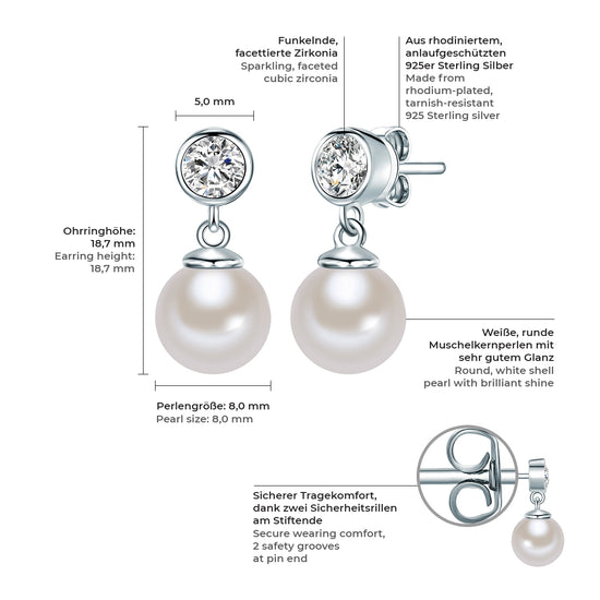Ohrstecker Sterling Silber Südsee-Muschelkernperle weiß Zirkonia weiß